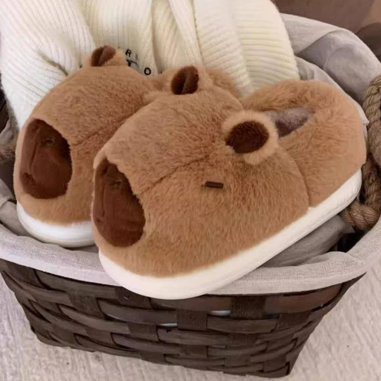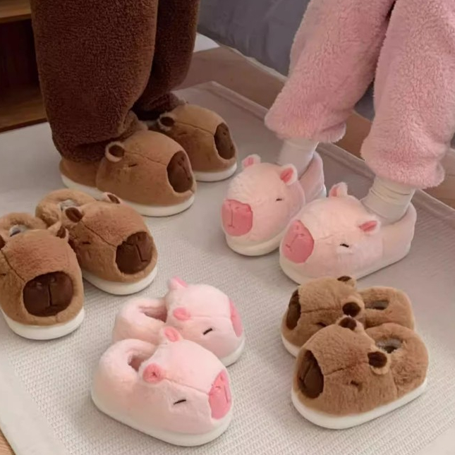 Giày Cotton Xixitiao Cha Mẹ-Con Mùa Đông Dễ Thương Kapibara Phong Cách Mới Cặp Đôi Trong Nhà