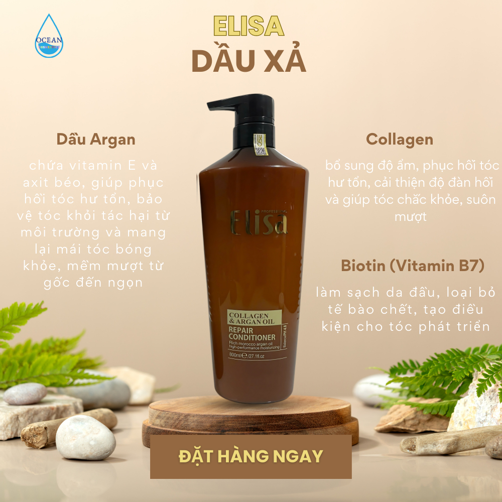 [MUA 2 TẶNG 2] Bội xả Elisabara 800ml gấp đôi collagen phục hồi tóc chắc khỏe suôn mượt chống xơ rối kích thích mọc tóc