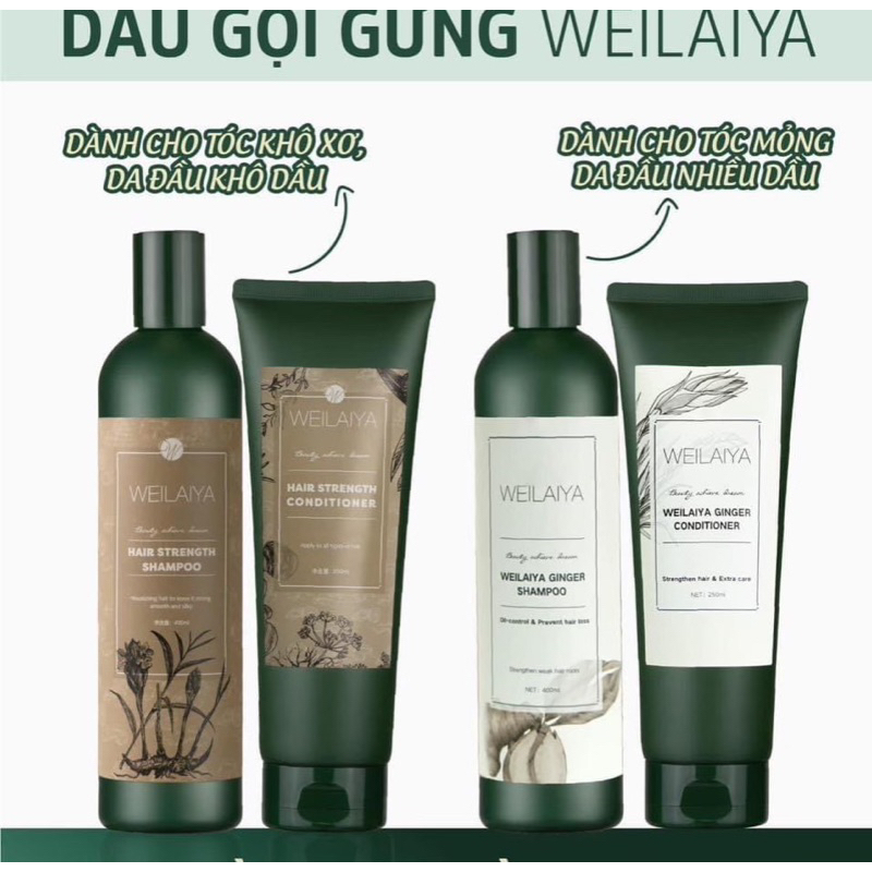 Cặp gội Xả gừng Weilaiya (kèm bộ mini) hỗ trợ mọc tóc