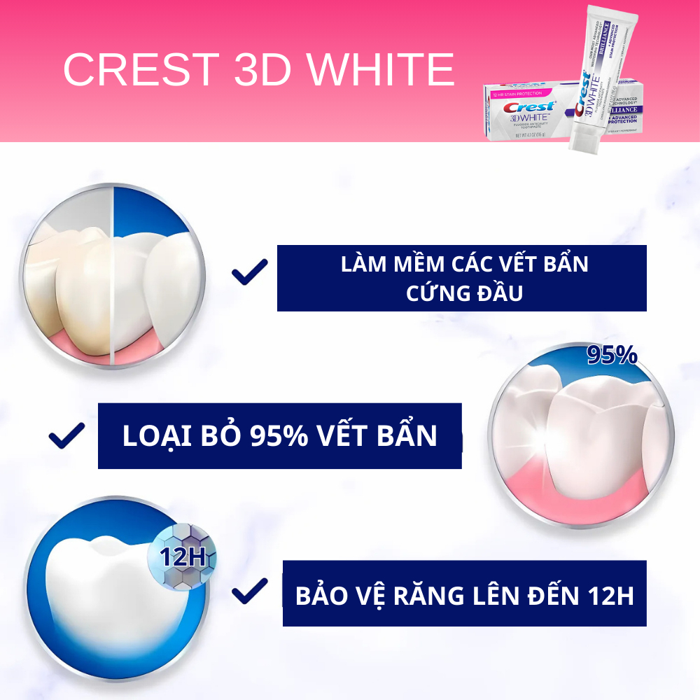 Kem Đánh Răng Crest 3D White Brilliace Trắng Sáng, Hương Bạc Hà Tươi Mát, Đánh Bay Vết Ố Bẩn