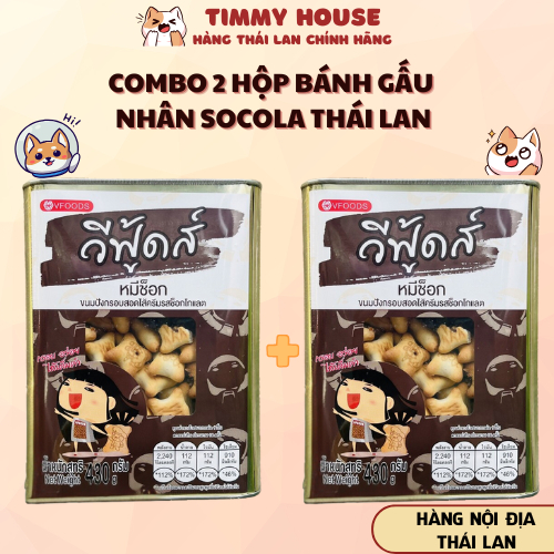 Bánh Gấu Thái Lan Nhân Socola Tan Chảy Vfoods Vỏ Bánh Giòn Rụm Hộp Thiếc Hàng Nội Địa Thái Lan 400gr