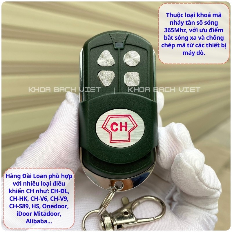 Điều khiển cửa cuốn CH-F9 Đài Loan, Remote khoá cửa cuốn mã nhảy 365Mhz - Khoá Bách Việt.