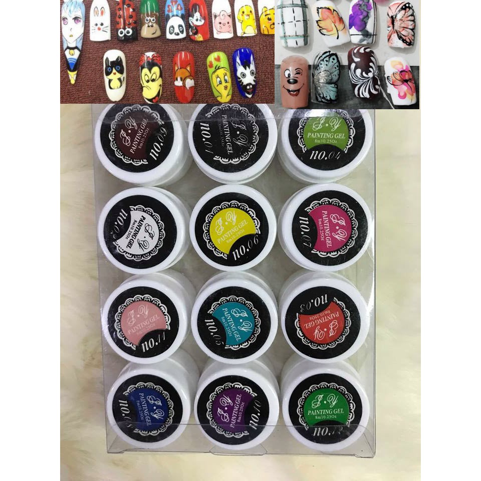 Sét Gel Vẽ 12 Màu Cực Đẹp, Dễ Vẽ Đậm Đặc, Màu Loang Đẹp