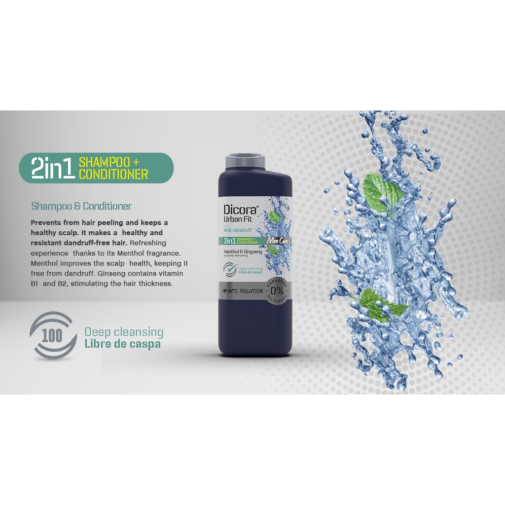 Dầu gội nam ngăn ngừa gàu Dicora Urban Fit Anti-dandruff kết hợp xả 2in1 400ml - BioTopcare Official