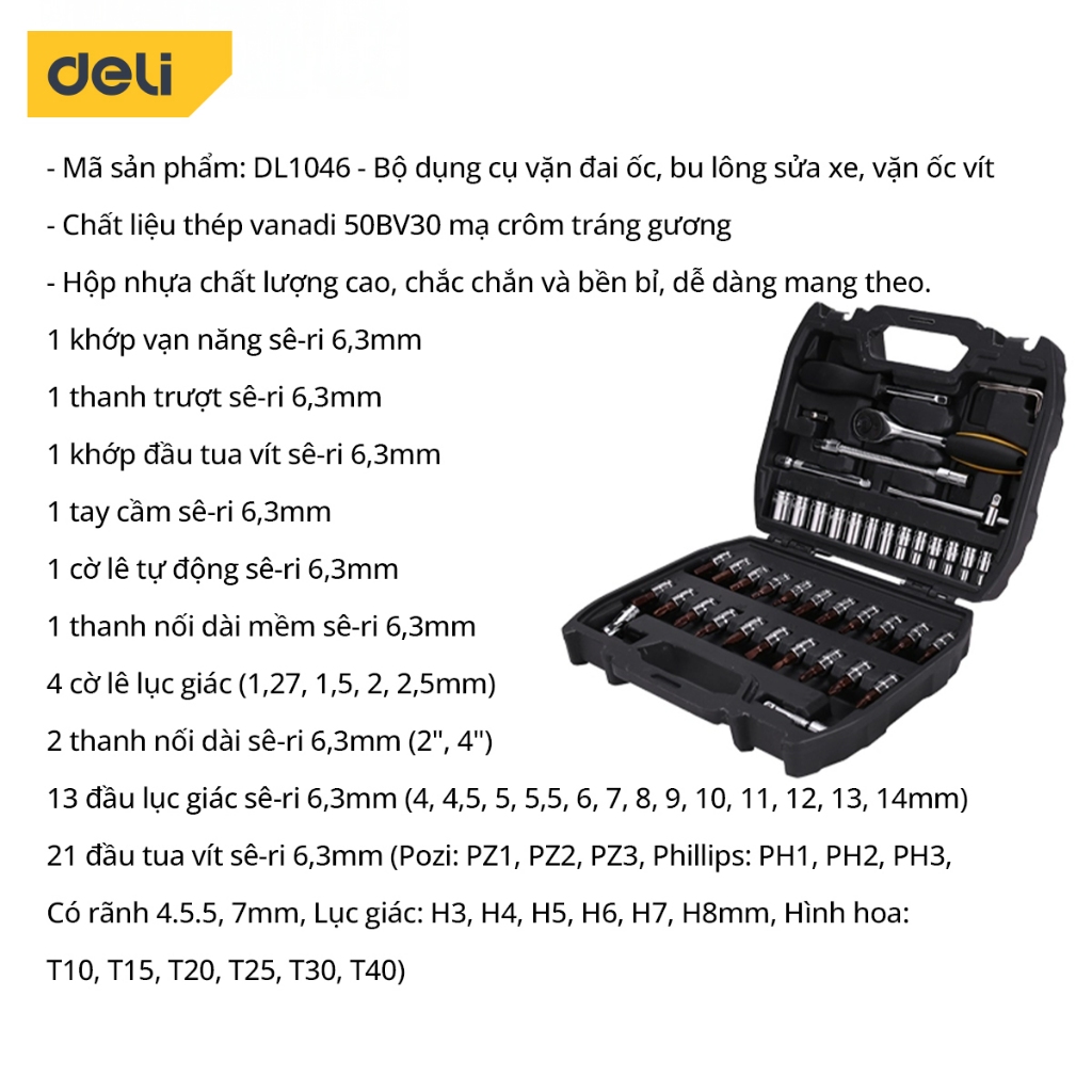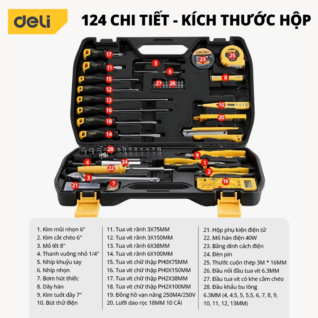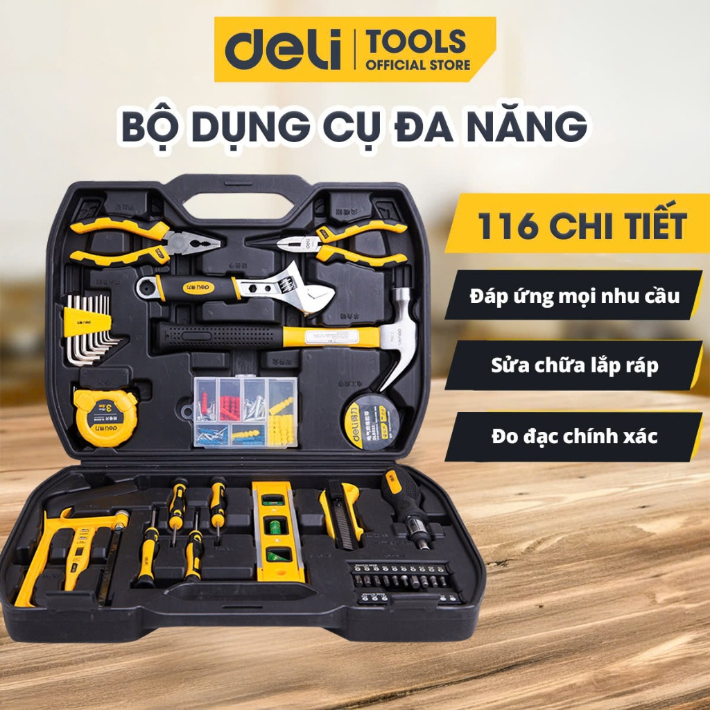 Bộ Dụng Cụ Sửa Chữa Nhiều Chi Tiết Deli Cao Cấp Hộp thùng đồ nghề đa năng - Công cụ toàn diện