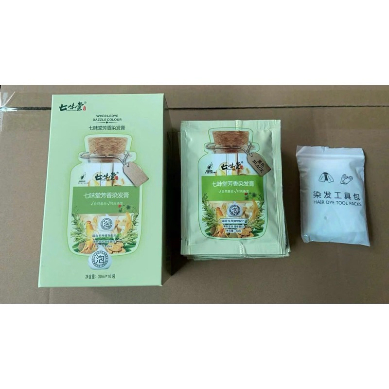 [ Hộp 10 gói ] Dầu gội nhuộm màu tóc thảo dược, dầu gội phủ bạc tóc, nuôi dưỡng tóc khoẻ óng mượt