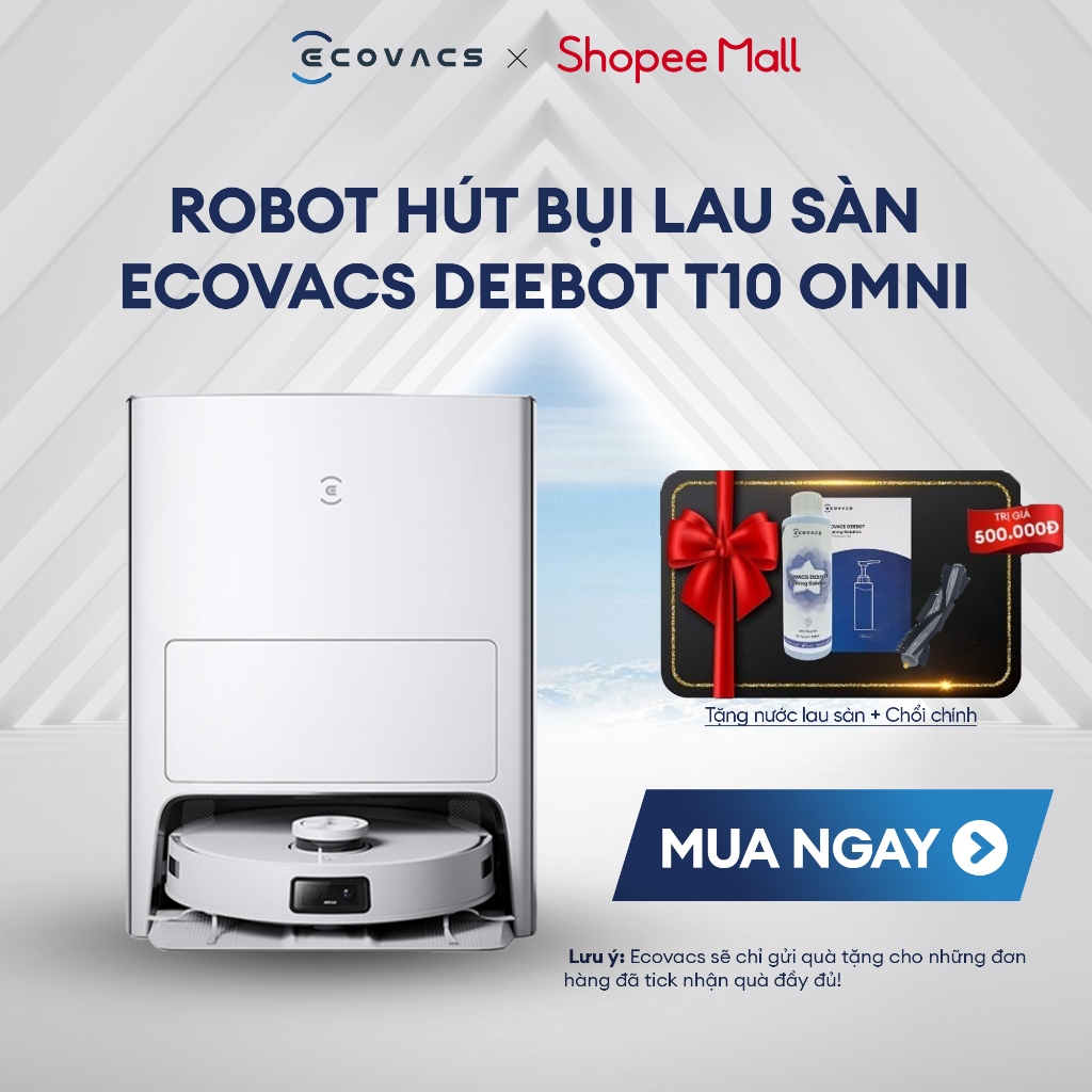 Robot Hút Bụi Lau Sàn Ecovacs T10 OMNI - Robot hút bụi tự giặt giẻ đổ rác- BH 12T tặng phụ kiện