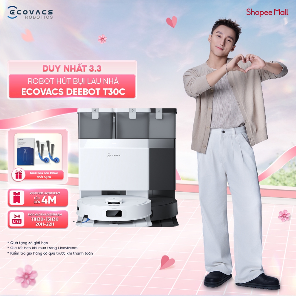 Robot hút bụi lau nhà Ecovacs Deebot T30C 2026 - 20000Pa - ZeroTangle 3.0 - Giặt giẻ nước nóng - BH chính hãng