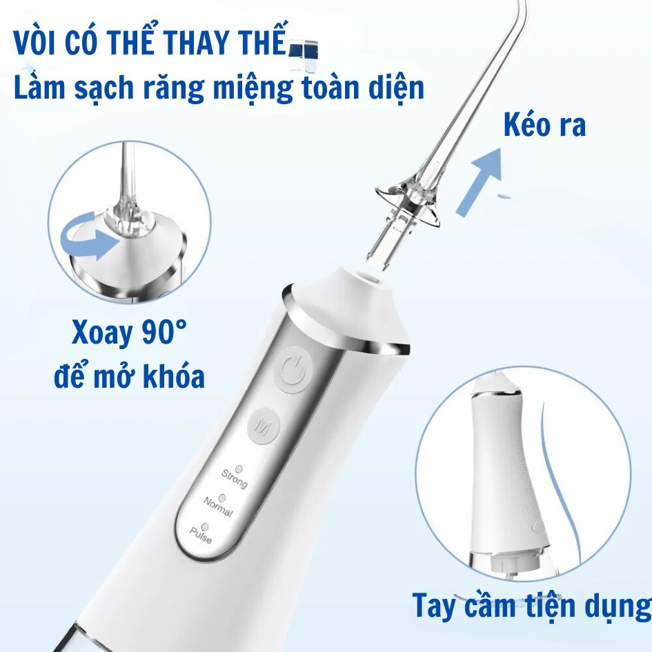 Tăm Nước Cầm Tay KAW 4 Chế Độ Dễ Dàng Vệ Sinh Răng Miệng, Làm Sạch Sâu Kèm 5 Đầu Xịt Đa Năng
