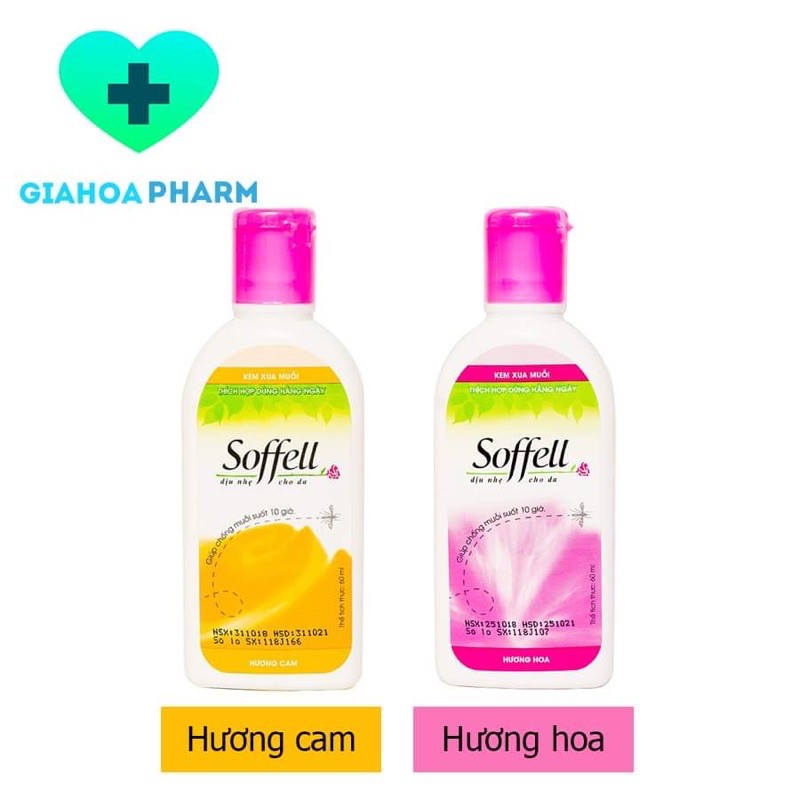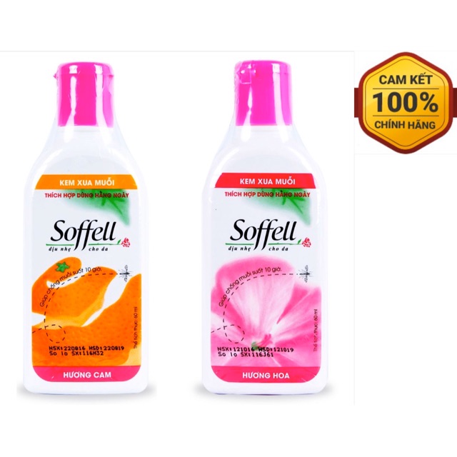 Kem bôi chống muỗi Soffell 60ml - Xua đuổi ngăn muỗi đốt, kéo dài 10 giờ (hương hoa / hương cam) [sofell, soffel, sofel]