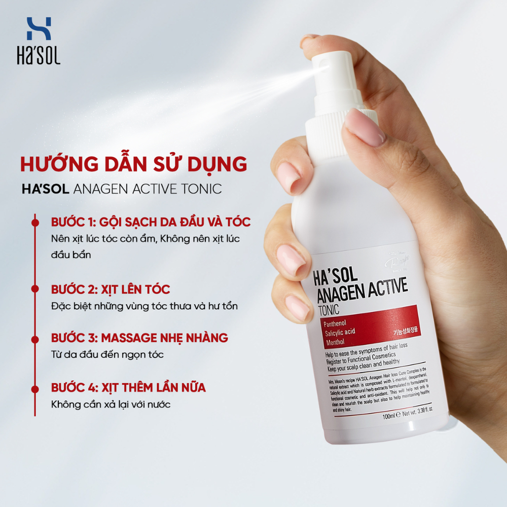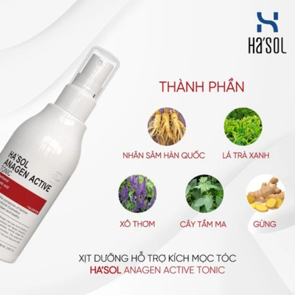 Xịt Kích Mọc Tóc Hasol Anagen Active Tonic 100ml - Dưỡng Da Đầu Chắc Khỏe, Ngăn Rụng Tóc