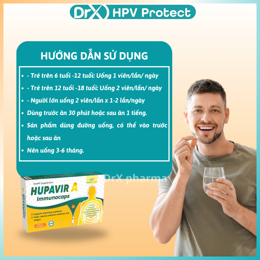 Viên uống hỗ trợ đào thải HPV HUPAVIR A Immunocaps hỗ trợ sùi mào gà, tăng cường đề kháng cơ thể- Hộp 30v và hộp 60 viên