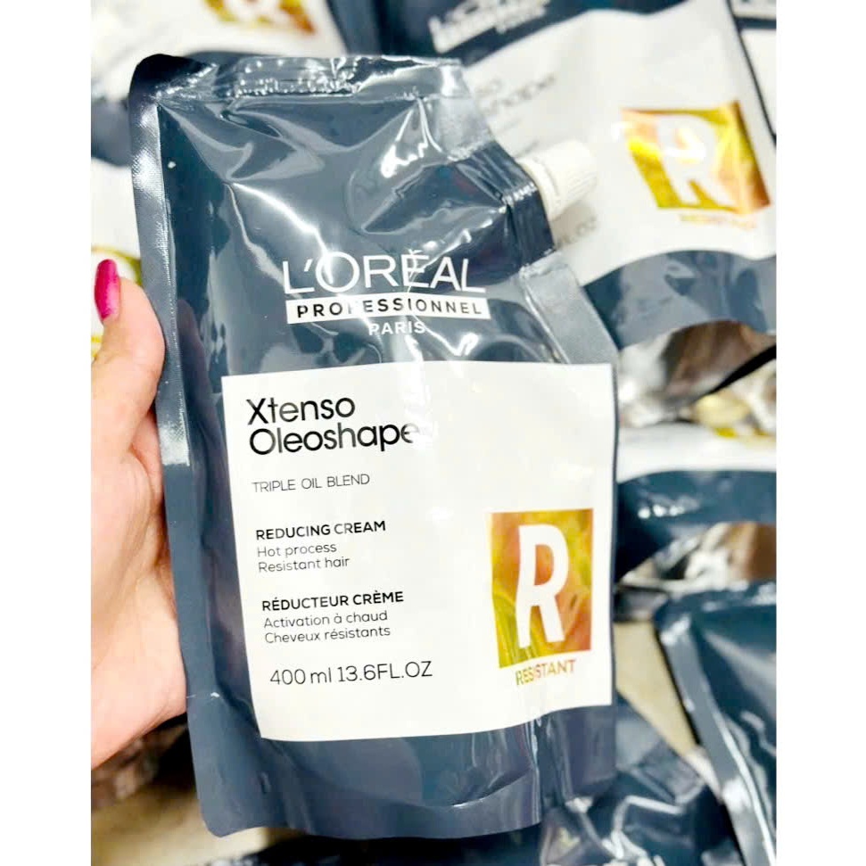Kem uốn duỗi tóc chữ R+ cho tóc siêu khỏe LORREAL 400gram sóng xoăn bồng bềnh, ép thẳng mượt 1 túi