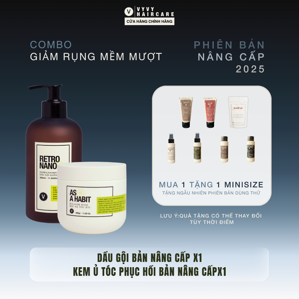 Bộ sản phẩm dầu gội thảo dược + ủ tóc tráng gương làm mềm giảm rụng tóc vyvyhaircare V 700ml