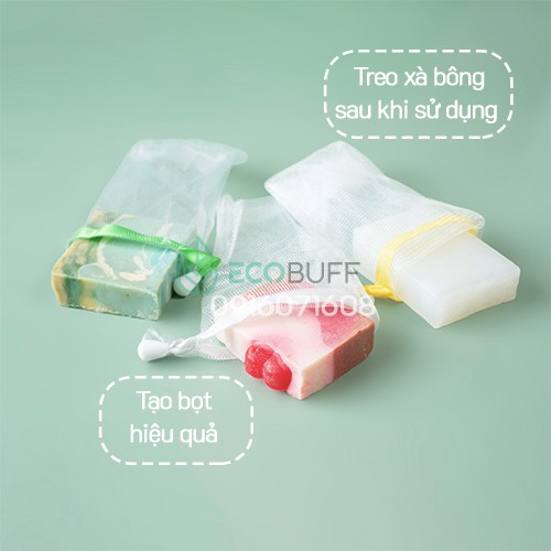 Túi lưới tạo bọt Ecobuff túi lưới cước đựng xà bông tắm, bánh gội đầu, bánh xả tóc tiết kiệm xà bông, tẩy da chết dịu nh