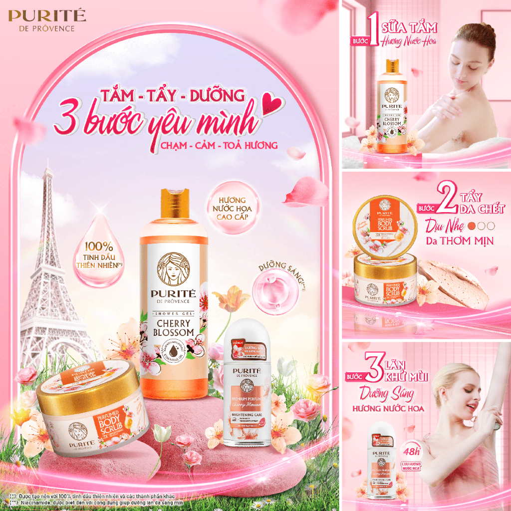 [BAO BÌ MỚI] Sữa Tắm Thiên Nhiên PURITÉ Hương Hoa Anh Đào/Hoa Hồng/Hoa Mẫu Đơn 250ml & 500ml
