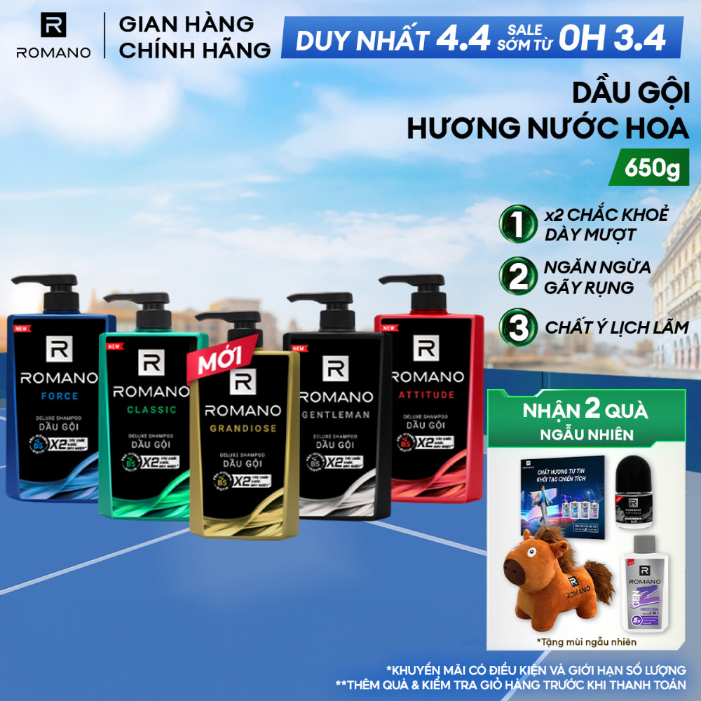 Dầu gội nam Romano hương Nước hoa nam Classic/ Force/ Attitude/ Gentleman 650g/chai