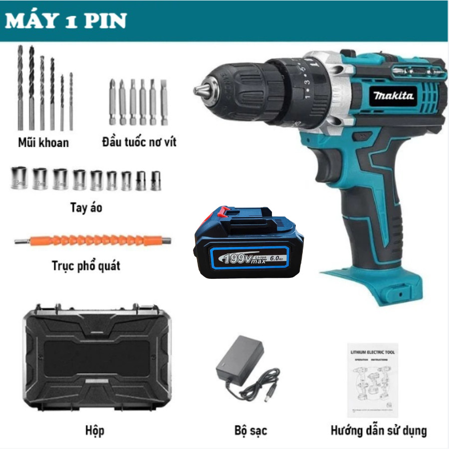 Máy Khoan Pin - Máy Bắt Vít Makiita Không Chổi Than Pin Lithium Bền Bỉ - 3 Chức Năng Siêu Tiện Lợi