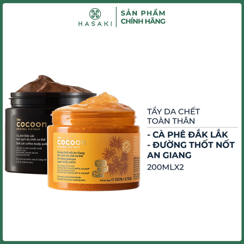 [DAILY] Combo Cocoon Tẩy Da Chết Toàn Thân Cà Phê Đắk Lắk + Đường Thốt Nốt An Giang 200mlx2 Hasaki