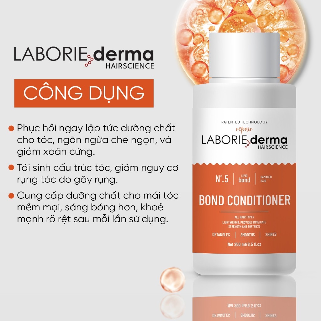 Bộ dầu gội chăm sóc tóc Laborie Derma Hairscience - 250ml - công nghệ Lipid Bond giảm hư tổn tóc