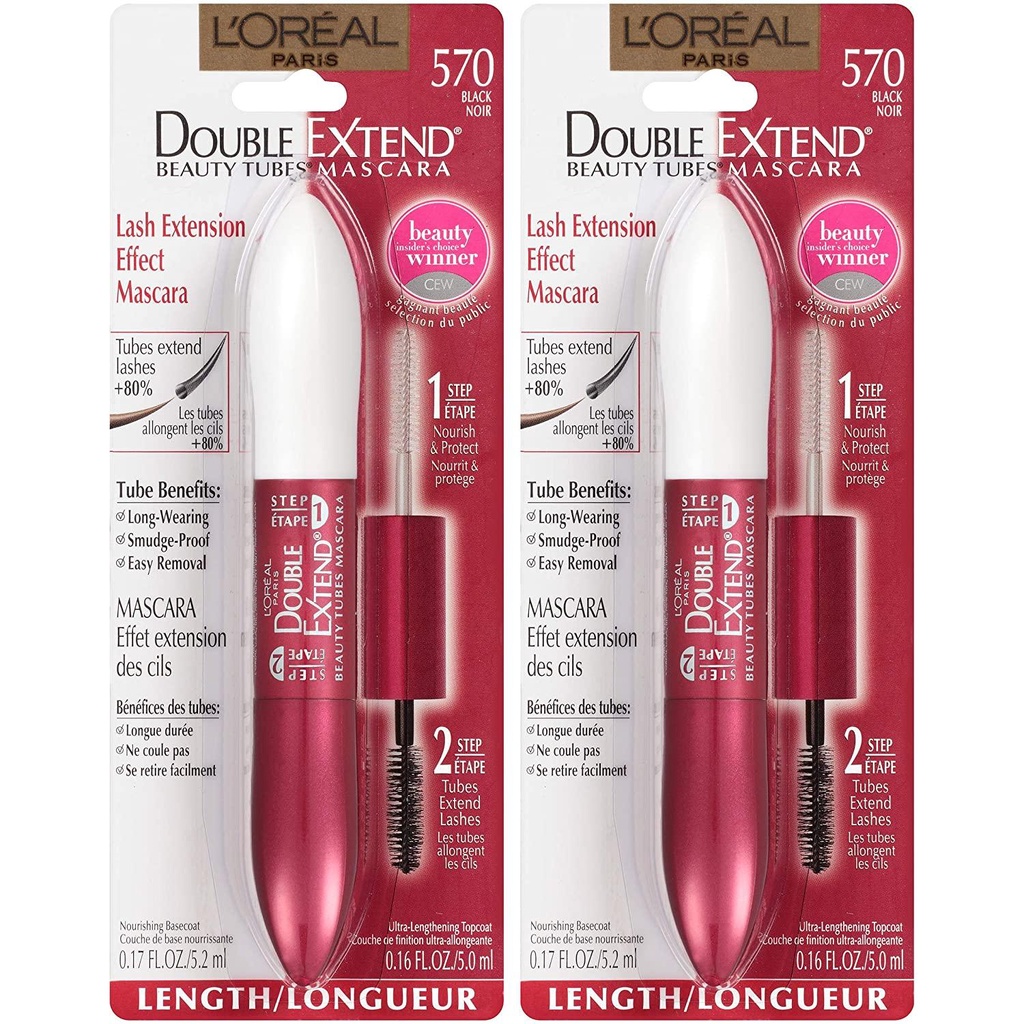 Mascara Loreal, Mascara 2 Đầu L'oreal Double Extend Dưỡng Mi Làm Dài và Làm Cong Mi(WATERPROOF)