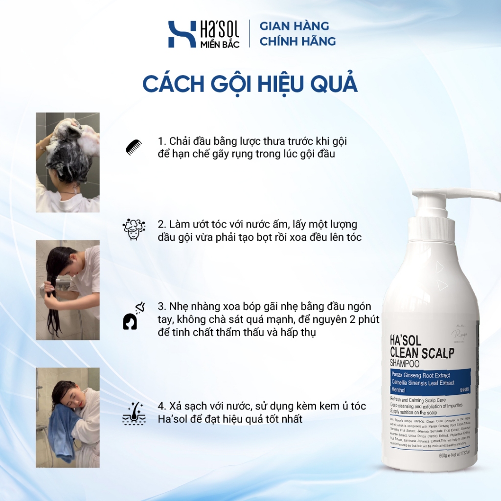 Dầu Gội Xanh HASOL Ngăn Gàu, Nấm Ngứa, Cung Cấp Dưỡng Chất Cho Da Nhiều Dầu, Tóc Mỏng Và Yếu - Ha'sol Clean Scalp 500g