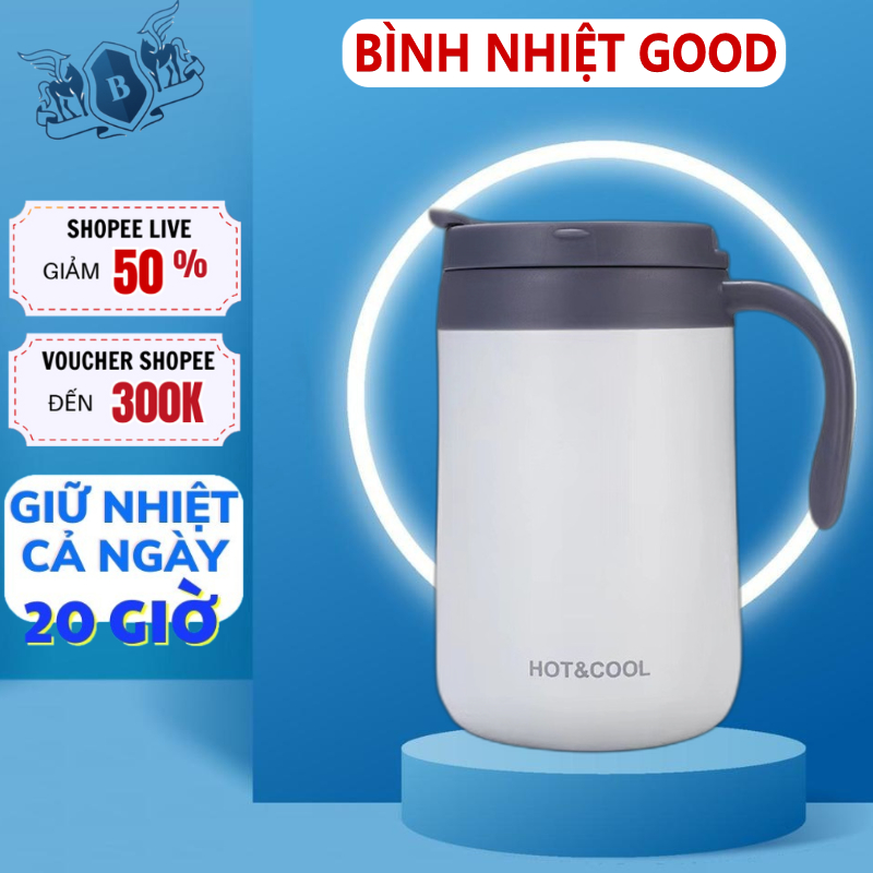Ca Cốc Giữ Nhiệt Văn Phòng TBNGOOD Có Tay Cầm Tiện Ích 350ml Siêu Giữ Nhiệt Inox 304