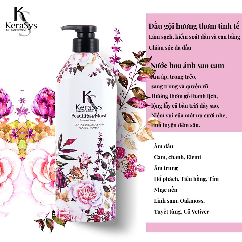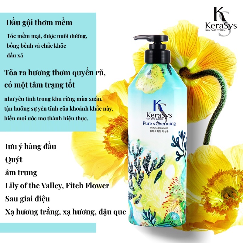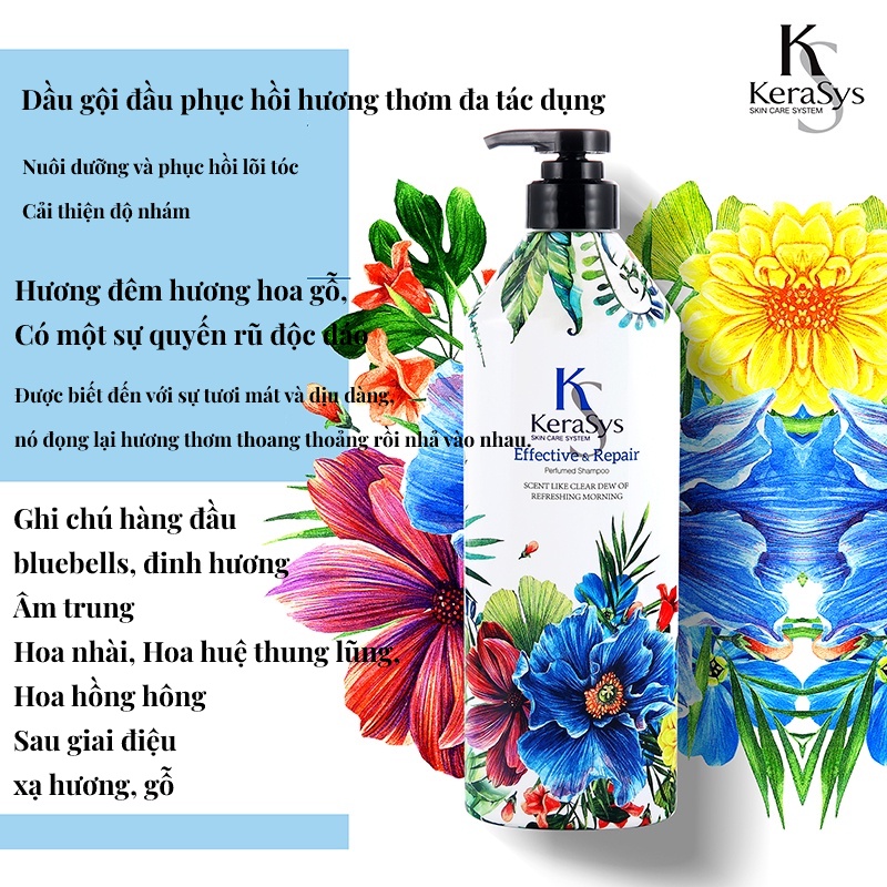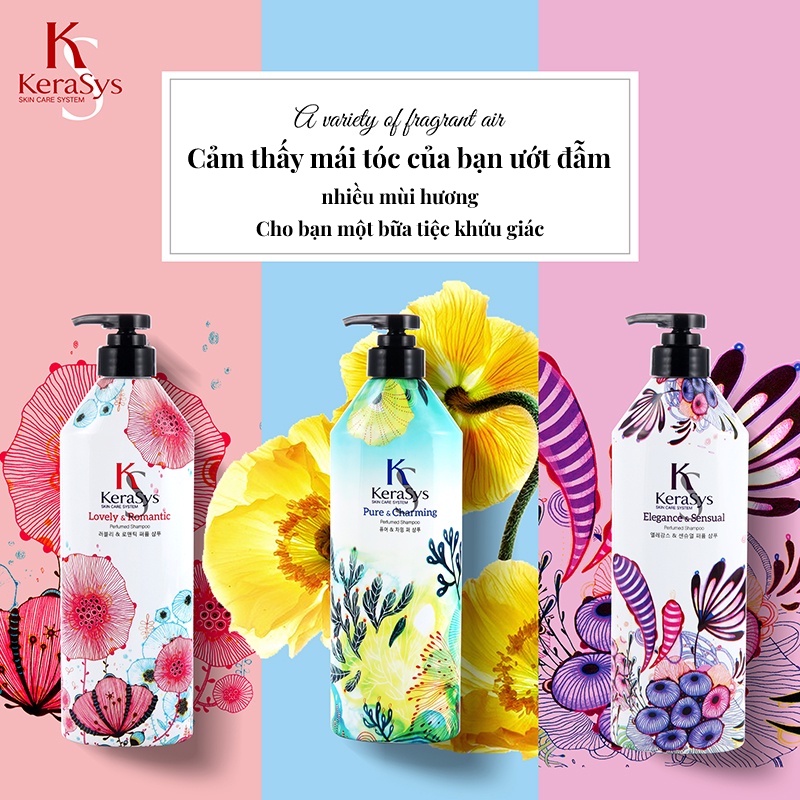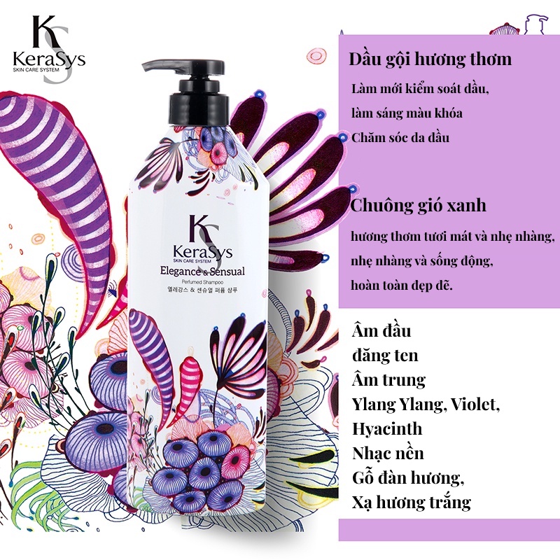 KeraSys [Elegance&Sensual] Dầu gội kiểm soát dầu sảng khoái với dưỡng tóc chống rụng tóc campanula màu xanh 600ml