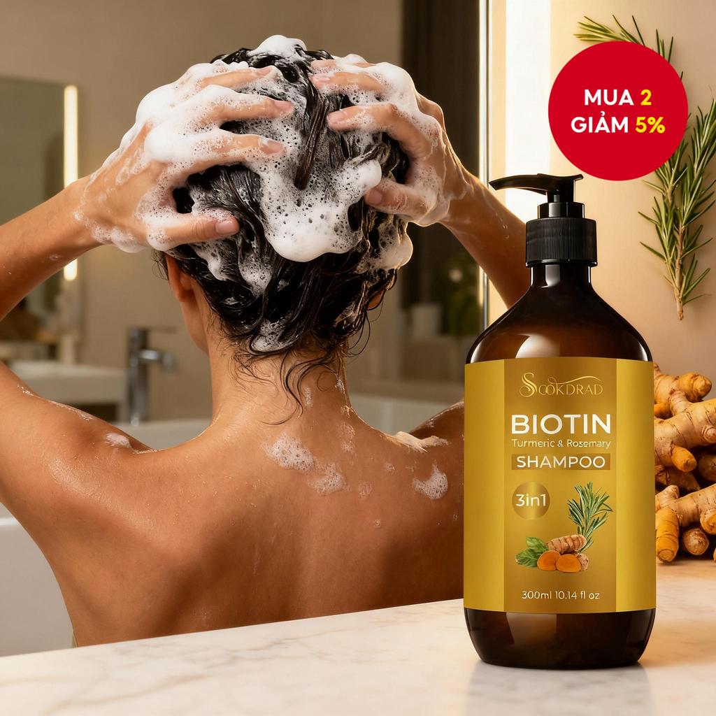 Dầu gội Biotin, Nghệ & Hương thảo, 3 trong 1 làm sạch, nuôi dưỡng, củng cố, làm phồng chân tóc, kiểm soát dầu lâu dài, dành cho tóc dầu, mỏng, xẹp, sử dụng hàng ngày & sau khi tập luyện, 300ml/10.14fl oz