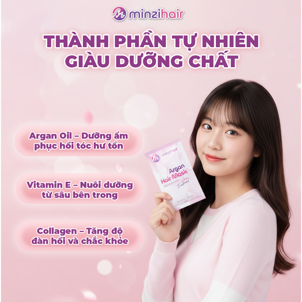 Kem Ủ Tóc Argan Minzihair – Collagen Vitamin E, Dưỡng Tóc Óng Mượt, Giảm Xơ Rối gãy rụng tóc