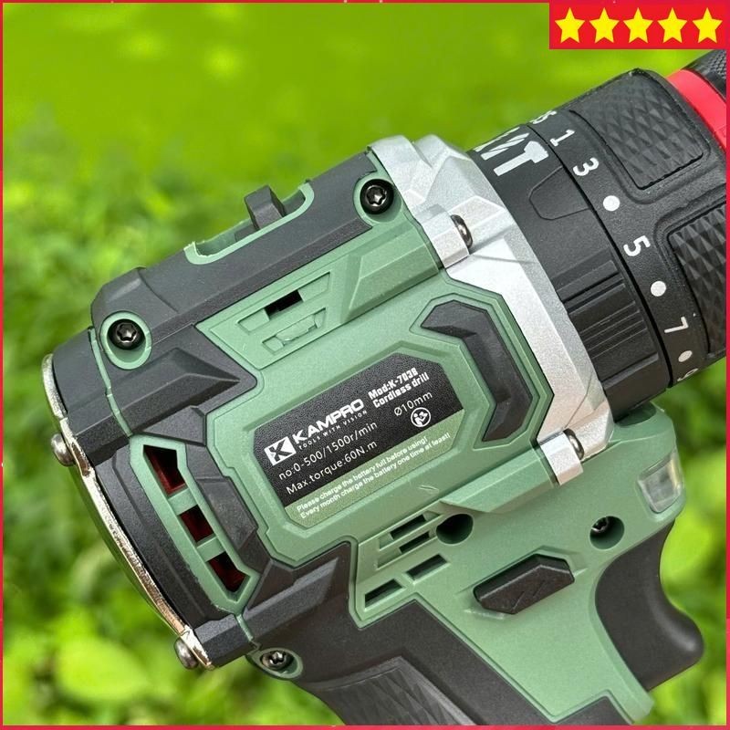 Máy khoan pin Kampro 7038 Đầu kẹp 10ly có khoá trục, lõi đồng, động cơ không chổi than, lực siết 60NM