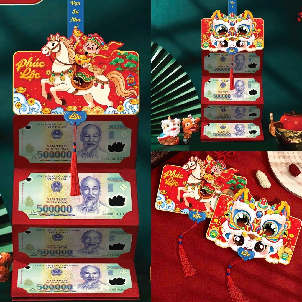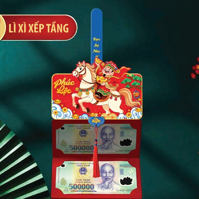 Bao lì xì quạt, lì xì ngăn gấp gọn, quạt tiền, lì xì tiền nhiều ngăn màu đỏ hài hước vui nhộn