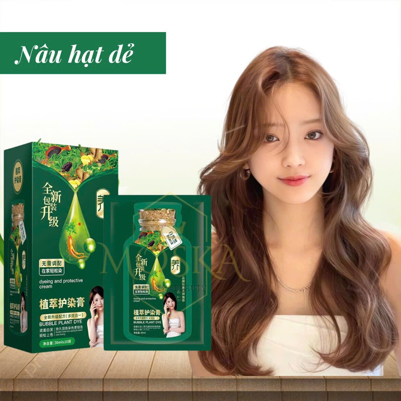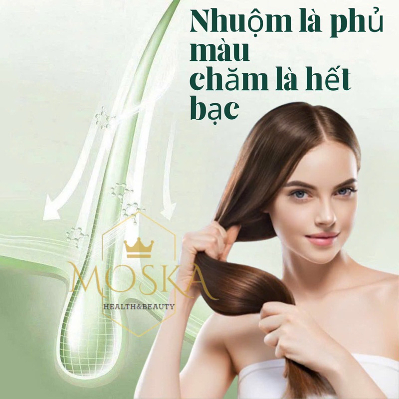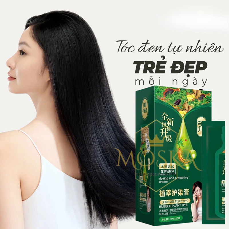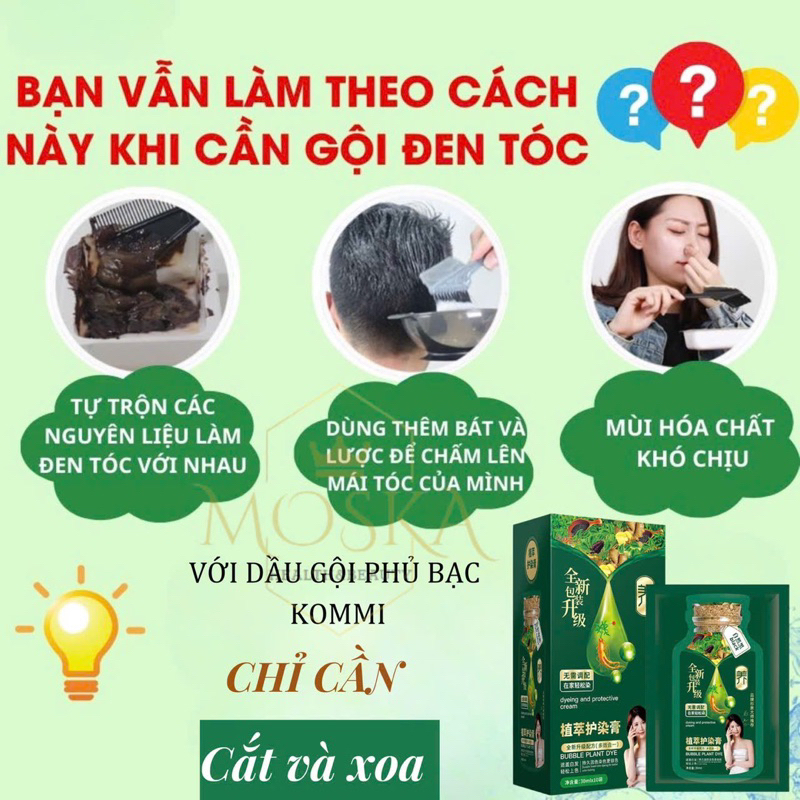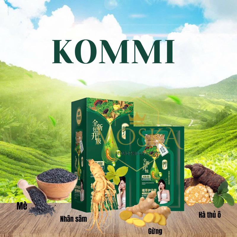 Dầu Gội Phủ Bạc Nhanh, Gội Đen Tóc Thảo Dược KOMMI 300ml HỘP 10 GÓI - Nhuộm tóc tại nhà - lên Màu Tự Nhiên Sau 1 Lần Gội