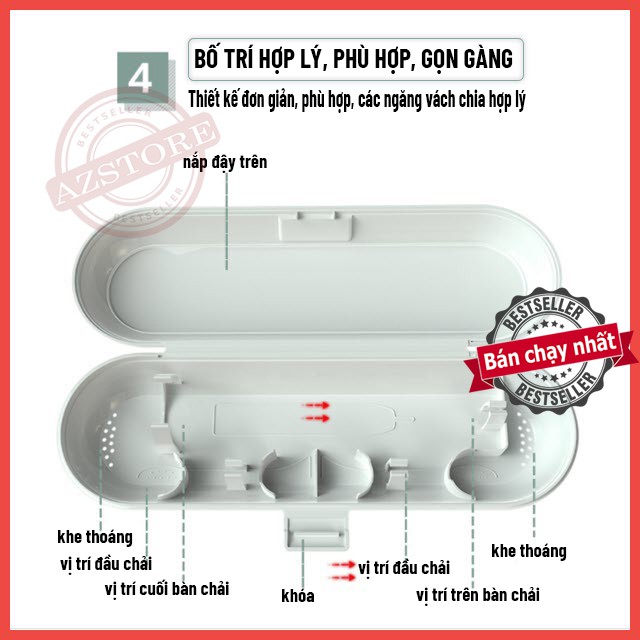 Hộp đựng bàn chải điện Hachico chứa được một bàn chải và hai đầu chải an toàn và gọn gàng
