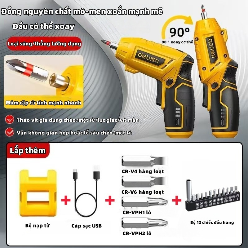 Máy Khoan Điện Không Dây Deli Đa Chức Năng Không hộ gia đình nhỏ bộ dụng cụ pin thể sạc lại bằng