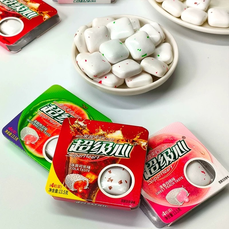 [HÀNG HOT] Kẹo cao su SUPERHEART 15 vị mát lạnh sảng khoái bạc hà kết hợp hoa quả 4 viên to/vỉ