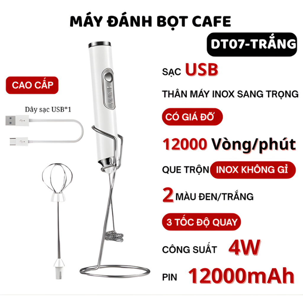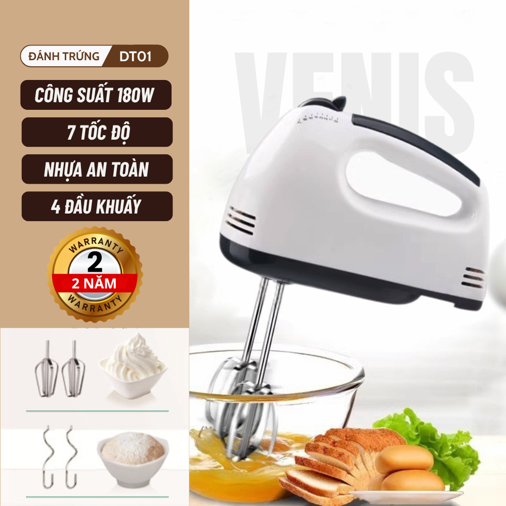 Máy Đánh Trứng Cầm Tay 7 Tốc Độ Tặng 4 Đầu Đánh Cao Cấp, Hoạt Động Êm Ái