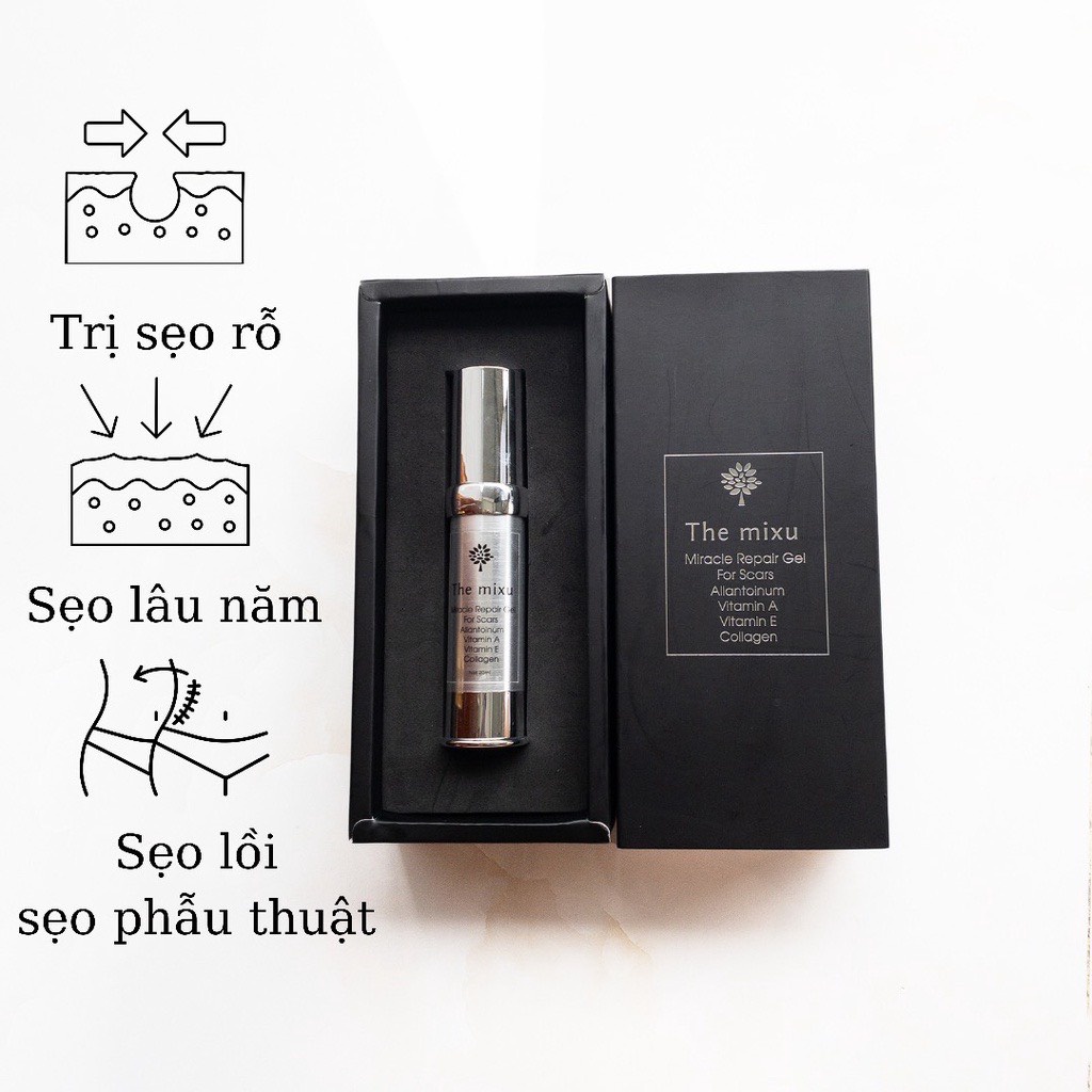 Kem mờ sẹo rỗ do mụn liền sẹo lõm, sẹo mổ gel chấm sẹo lăn kim se nhỏ lỗ chân lông The mixu handmade
