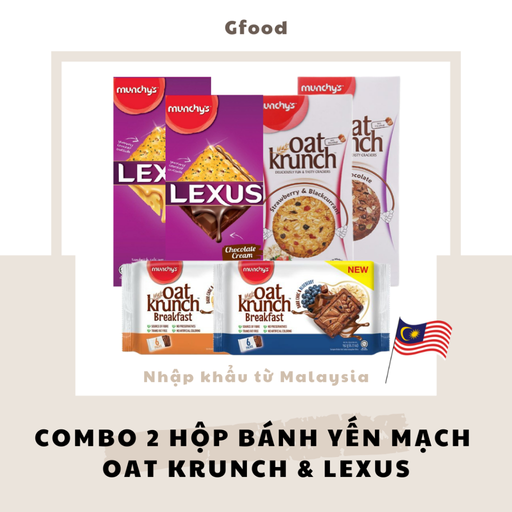 [COMBO 2 HỘP] Munchy's Oat Krunch & Lexus (Bánh Yến Mạch Socola, Dâu Tây, Hạnh Nhân, Việt Quất) 156gr-192gr