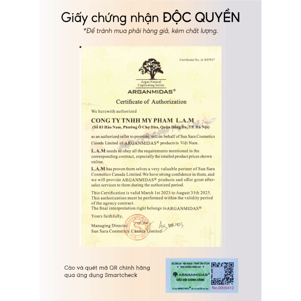 [TẶNG LƯỢC PHỒNG TÓC]Cặp Gội Xả Arganmidas 450ml Dưỡng Tóc Bóng Khỏe Tinh Chất Argan Oil Cao Cấp Cho Tóc Khô Xơ Rối