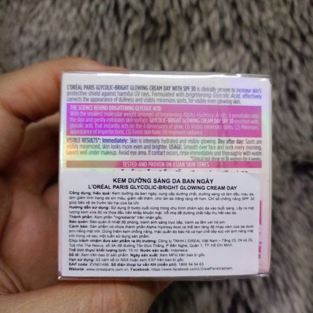 ( 15ml ) Kem dưỡng sáng mờ thâm nám L'Oreal Paris Glycolic (AHA) Bright