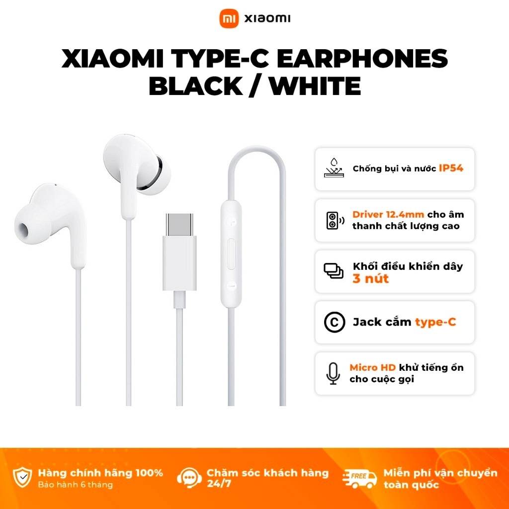 Tai Nghe Có Dây Xiaomi Type-C Earphone | Kết Nối Type-C | Micrô Nghe Gọi | Bảo Hành 12 Tháng