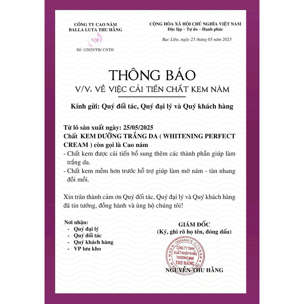 Cao Nám Balla Luta Lớn 30gr Chất Kem Mới cải tiến thêm nhiều dưỡng chất giúp trắng da mờ thâm nám tàn nhang đồi mồi