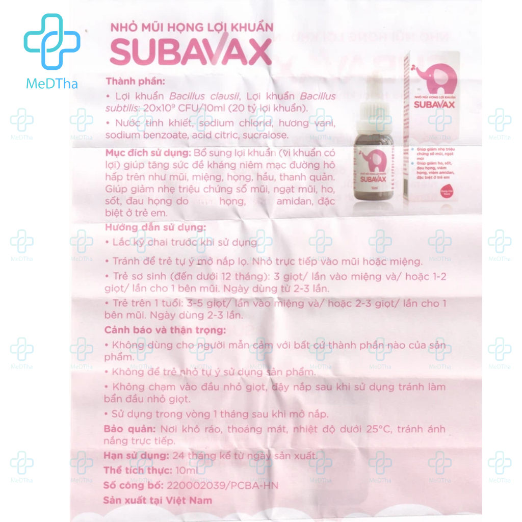 Nhỏ Mũi Họng Subavax Hồng - Bổ Sung Lợi Khuẩn, Tăng Sức Đề kháng, Giảm Ngạt Mũi, Giảm Ho (Lọ 20ml)