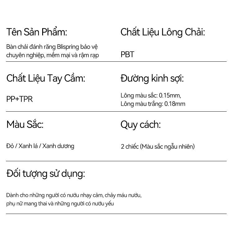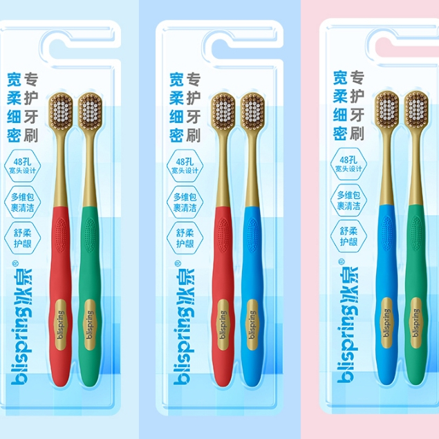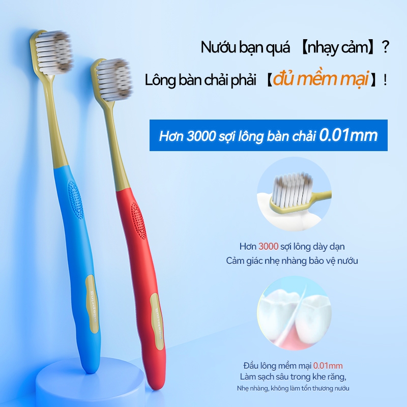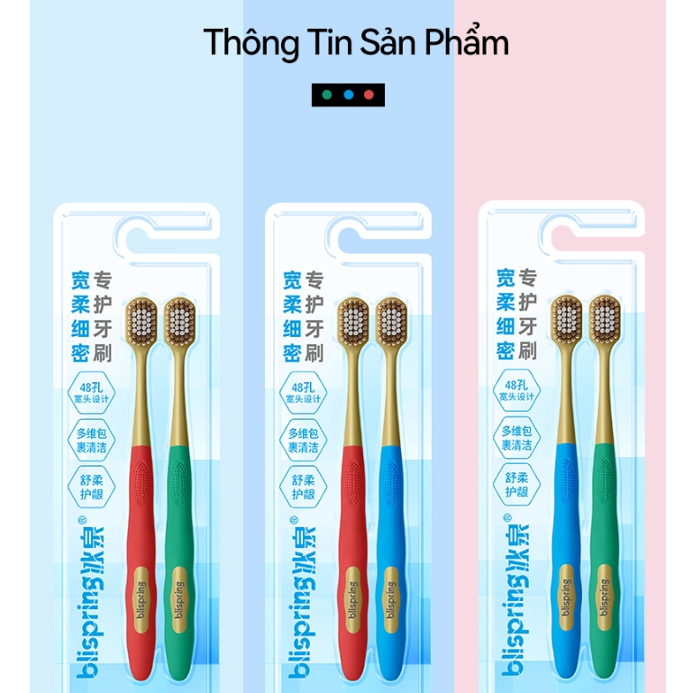 [2 Cái] Blispring Bàn chải đánh răng lông mềm có hơn 3.000 sợi lông mềm giúp bảo vệ nướu và làm sạch răng (Màu sắc ngẫu nhiên)