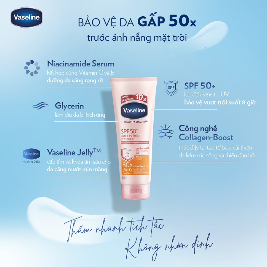 Dưỡng Thể Vaseline Trắng Da Chống Nắng 50X SPF50+ Healthy Bright Serum