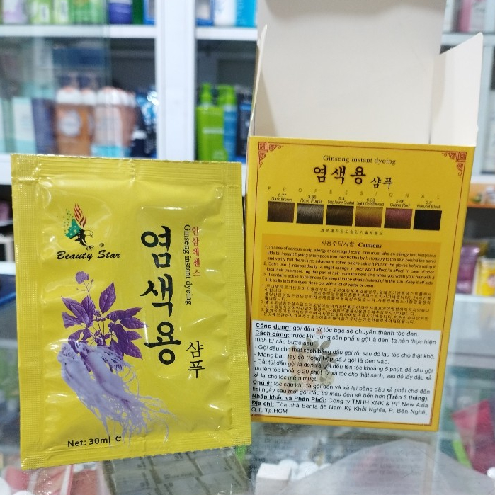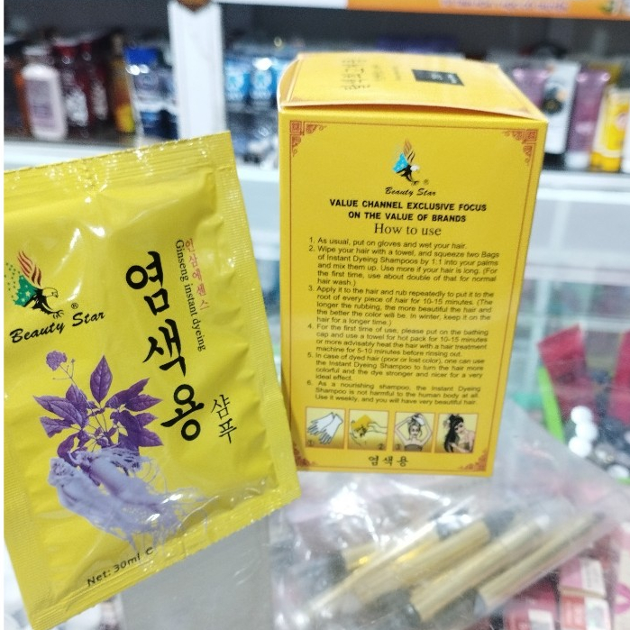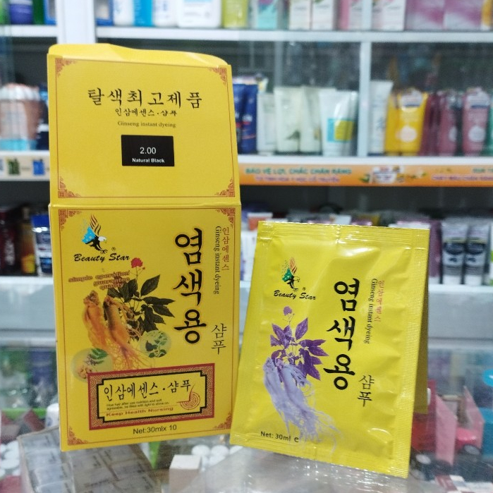 Nguyên hộp (10 gói) dầu gội nhuộm tóc phủ bạc Beauty Star Hàn Quốc ( 30ml x 10 gói) - Natural Black