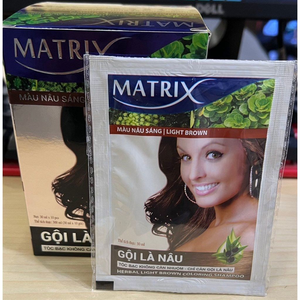 Dầu gội Matrix Gội Là Nâu, gội là đen (Hộp 10 gói x 30ml/hộp), có bán lẻ theo gói, y tế kitoto có ship hỏa tốc