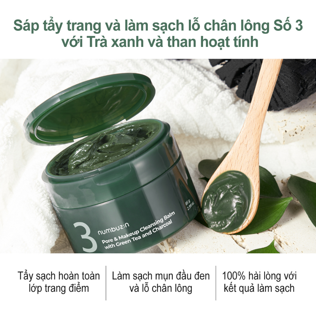 numbuzin No.3 Sáp tẩy trang làm sạch sâu lỗ chân lông với trà xanh & than hoạt tính – 85g