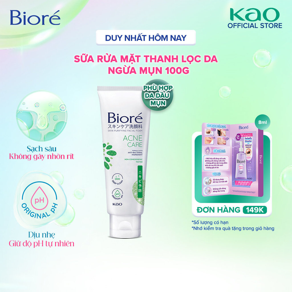Sữa Rửa Mặt Thanh Lọc Da - Sạch Mụn & Kháng Khuẩn Biore 100g